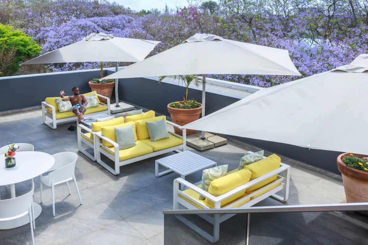 A modern and centrally-located Johannesburg hotel experience, nestled in the pristine, suburban Rosebank area. Drive along the jacaranda-lined lane, turn into our driveway, and expect to be greeted with a warm “Welcome Home” from our 24-hour security guard. Our in-house pooches Hazel and Maggie will also be waiting at the front door.
